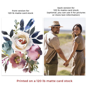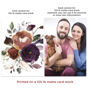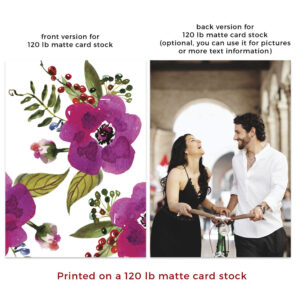 Important information: Printed on 100 lb matte white card stock Oversized postcard – 5″ x 7″ in size Double-sided printing Two free proofs included, additional $10 for every reproofing after your second proof Announce your marriage to family and friends in style. You can modify and change the wording to suit your needs. Reminders: Type …
