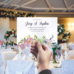 Creative Save The Date Postcards, Custom Wedding Announcement Cards, Wedding Favors, Splashy Floral Theme std129