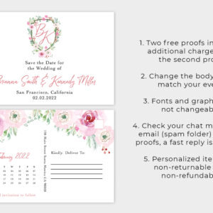 Important information: Printed on 100 lb matte white card stock Oversized postcard – 5″ x 7″ in size Double-sided printing Two free proofs included, additional $10 for every reproofing after your second proof Announce your marriage to family and friends in style. You can modify and change the wording to suit your needs. Reminders: Type …
